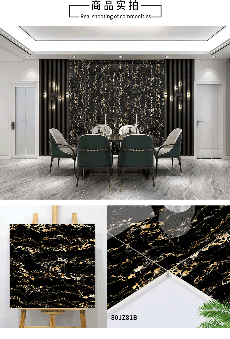 金線金粉 【產品介紹】航天級激光鍍金工藝,鉆石雕刻技術,高溫慢燒,釉層不吸污吸水率低,真空鍍金燒成后再進行真空電鍍工藝,平整如鏡面,精拋細磨,磚面平整光滑細膩光澤度、亮度、硬度較高。立體紋理,釉下彩工藝,三次淋釉增加磚面的立體感。