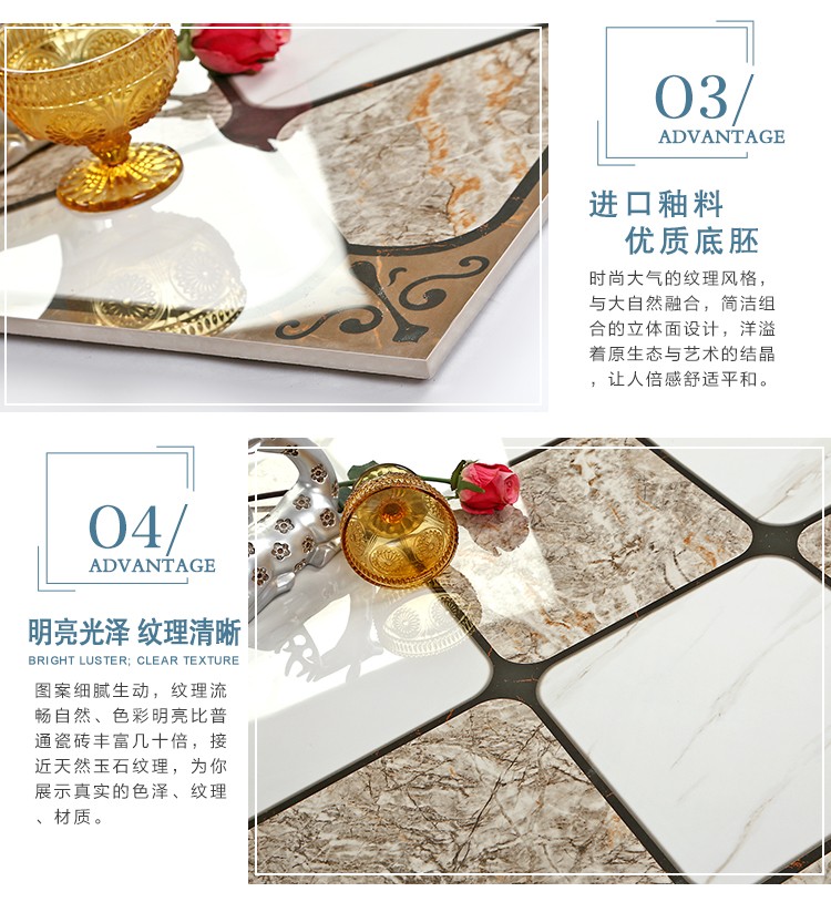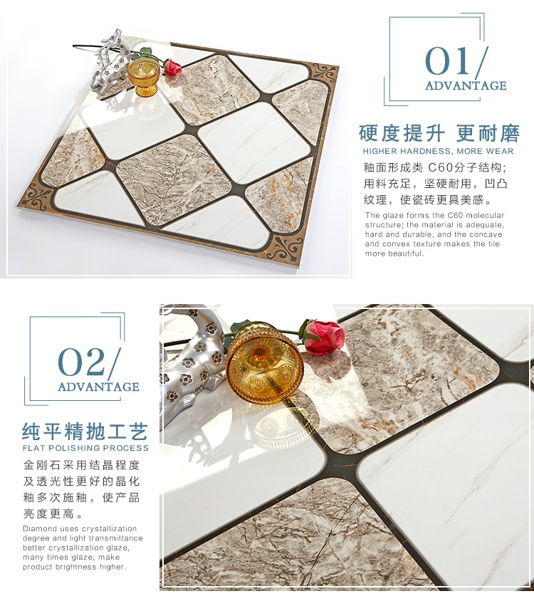 金曼古瓷磚廠家特價(jià)金剛石因高品質(zhì)而得名,是一款極具天然石材效果和微晶石質(zhì)感的仿石材瓷磚,它不但在價(jià)格、環(huán)保、耐用和清潔上極具優(yōu)勢,在質(zhì)感、規(guī)格、花色、重量等指標(biāo)上,金剛石都遠(yuǎn)遠(yuǎn)勝于石材、拋光磚。相比其他種類的產(chǎn)品,它最大的特點(diǎn)可以用“高亮度、高耐磨、高平整、高逼真、高清晰、高環(huán)保”。