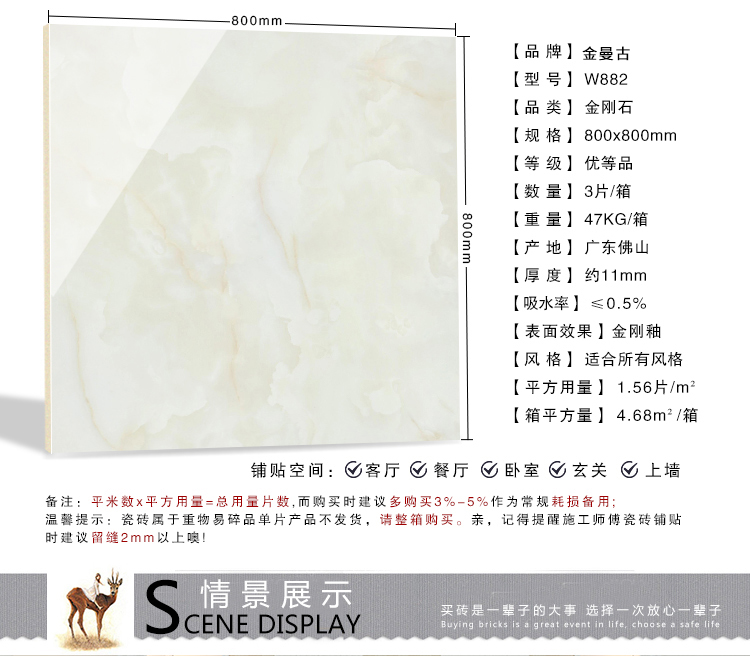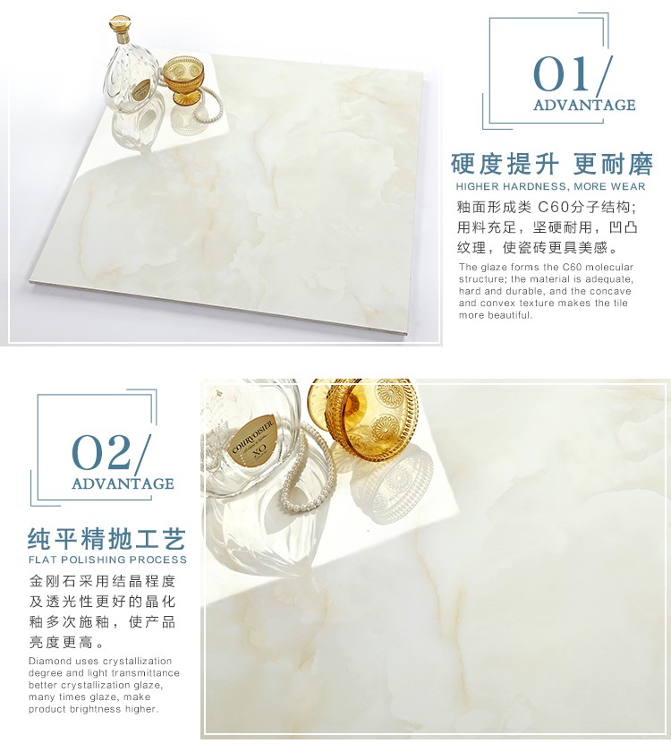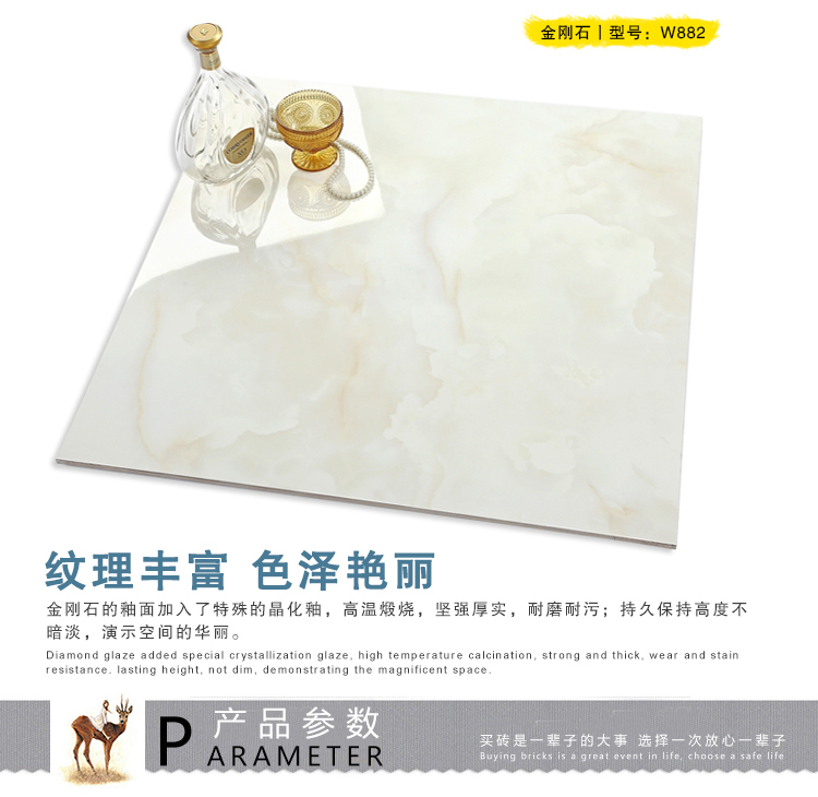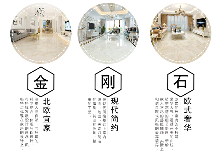 金曼古瓷磚廠家特價金剛石因高品質而得名,是一款極具天然石材效果和微晶石質感的仿石材瓷磚,它不但在價格、環保、耐用和清潔上極具優勢,在質感、規格、花色、重量等指標上,金剛石都遠遠勝于石材、拋光磚。相比其他種類的產品,它最大的特點可以用“高亮度、高耐磨、高平整、高逼真、高清晰、高環保”。