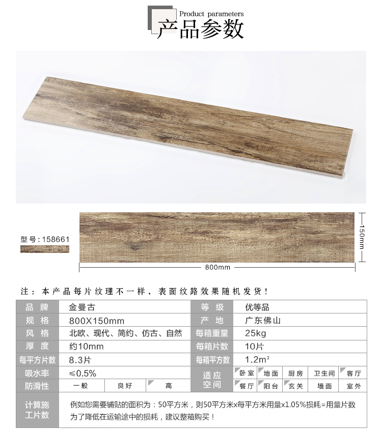 金曼古木紋磚,是一種表面呈現木紋裝飾圖案的環保建材.紋路逼真、自然樸實、沒有木地板褪色、不耐磨等缺點;曼古陶瓷木紋磚系列線條明快,圖案清晰為特色。本身具有阻燃,不腐蝕的特點,綠色、環保型建材;產品使用壽命長,耐磨,無需像木制產品那樣周期性地打蠟保養等.
