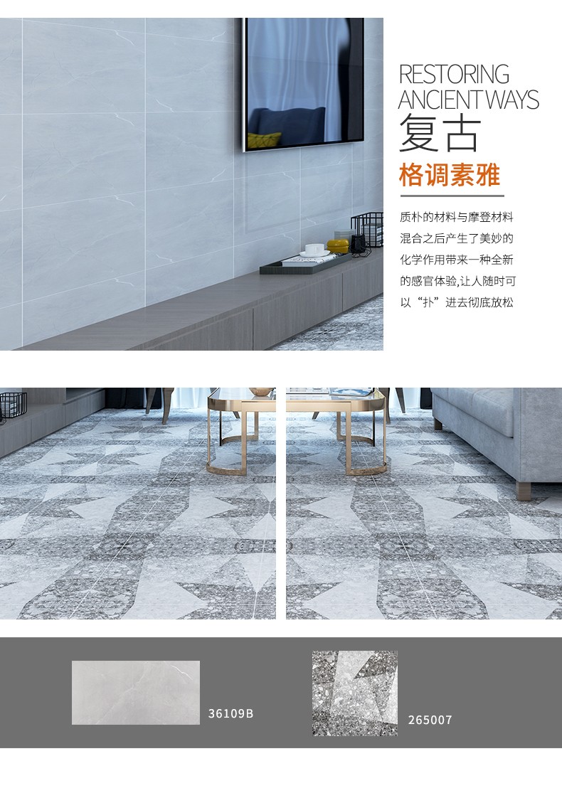 金曼古仿古地磚,采用國際先進的超大型壓機自動成型,經世界一流的滾筒印花和高溫煅燒而成,通過仿石、仿巖、仿木、仿布、仿金屬等多種表現方式,產品花色圖案新穎時尚,領先國際潮流,具有超耐磨、防滑、防污等高性能指標。