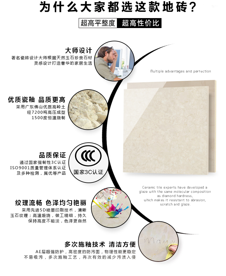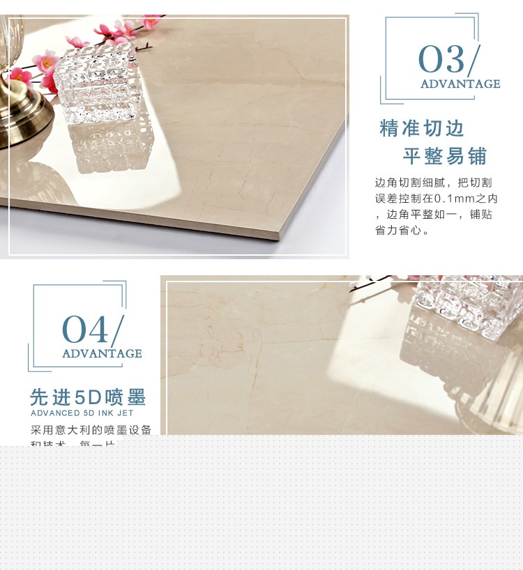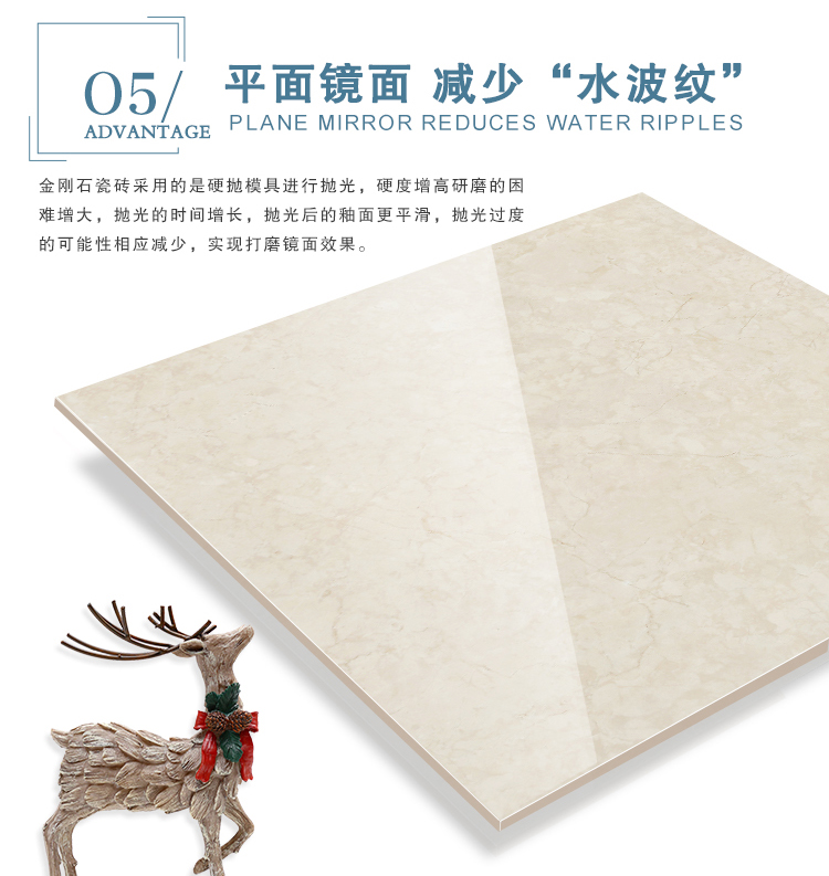 金曼古瓷磚廠家特價金剛石因高品質而得名,是一款極具天然石材效果和微晶石質感的仿石材瓷磚,它不但在價格、環保、耐用和清潔上極具優勢,在質感、規格、花色、重量等指標上,金剛石都遠遠勝于石材、拋光磚。相比其他種類的產品,它最大的特點可以用“高亮度、高耐磨、高平整、高逼真、高清晰、高環保”。