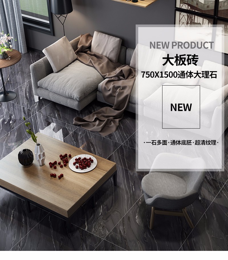 大規格瓷磚(DB751521A)-工程瓷磚 金曼古大規格瓷磚引進世界最先進的超大型壓機自動壓制而成,具有超大規格,超高硬度,超高致密度,超長時間煅燒,超低吸水率,超高光澤度。其磚面紋理流暢自然,效果逼真,適用于大型工程外墻干掛和酒店、商場、各辦公樓大堂等地面裝修